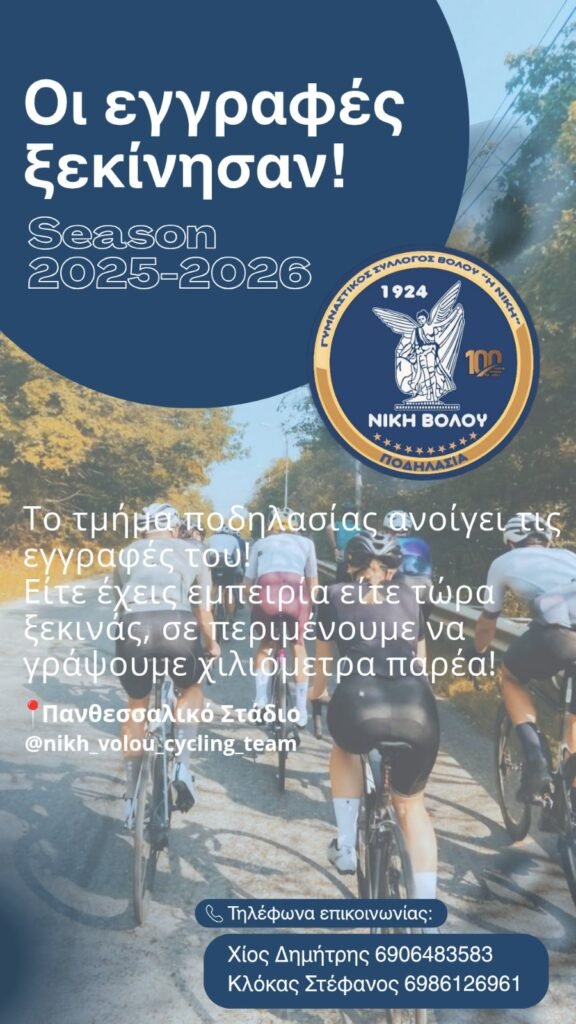 Την Κυριακή 7 Σεπτεμβρίου η αγωνιστική ομάδα ποδηλασίας της Νίκης Βόλου συμμετείχε στον Διασυλλογικό Αγώνα Δρόμου Αντοχής που πραγματοποιήθηκε στο Κυψελοχώρι Λάρισας.
